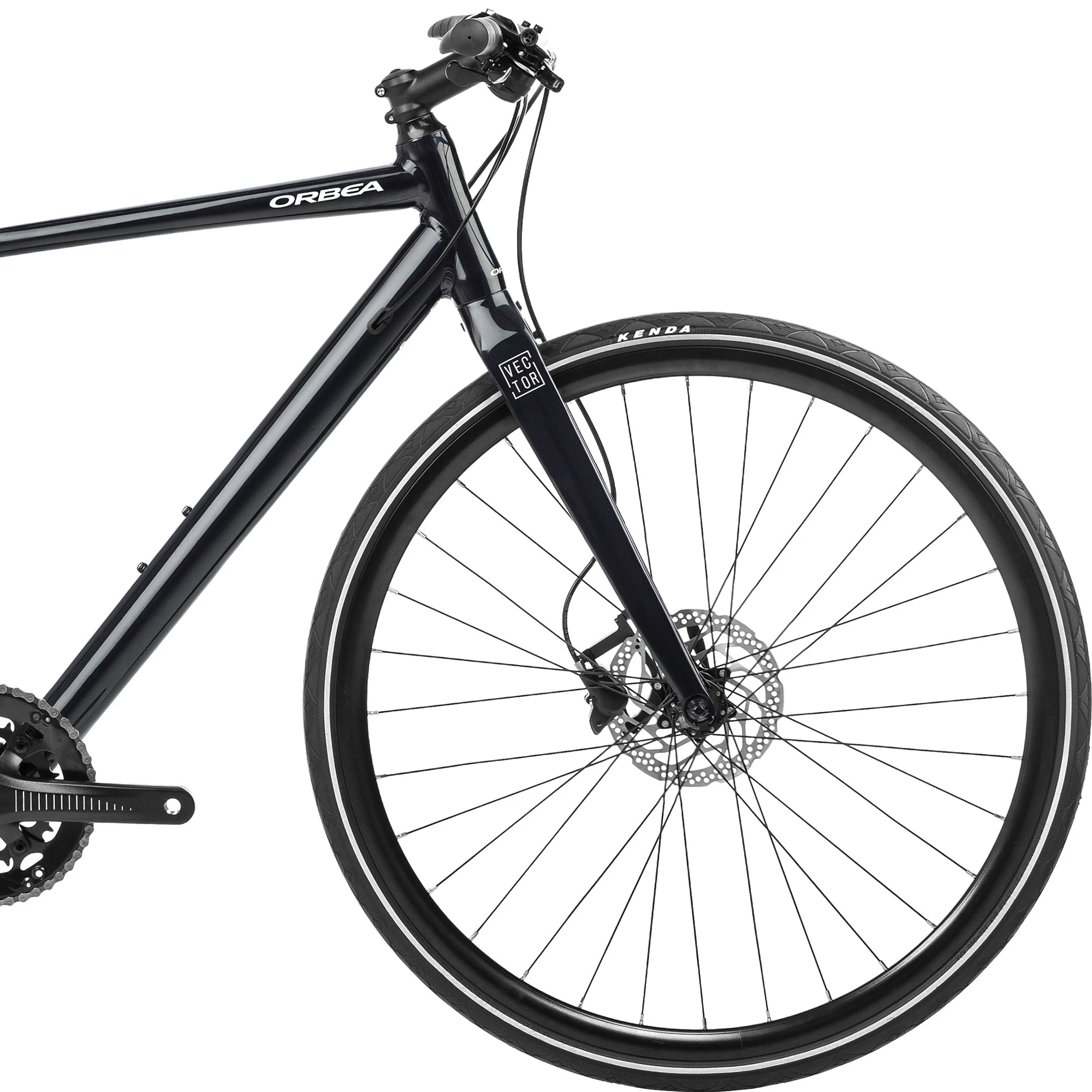 Sporty, lightweight and durable, the Orbea Vector 20 Disc Hybrid Bike is at home nipping through city streets and cruising round weekend jaunts alike thanks to its Balanced Sport Geometry and other versatile, capable qualities. Internal cable routing keeps a clean, minimal aesthetic whilst mudguard and rack compatibility mean you can kit this nimble steed out and load it up for longer rides and exploring further afield. Shimano hydraulic disc brakes add confidence when tackling traffic or crowded bike lanes as a result of their reliable stopping power – even in adverse conditions. Shimano Sora 9-speed components are robust and dependable, boasting crisp shifting and a wide enough range of gears to see you over tough hills, with no laboured grinding. Hard-wearing wheels are paired with larger tyres for enhanced traction and grip over rougher surfaces – resulting in a smooth, fast-rolling ride that delivers wherever you may choose to explore.